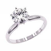 Gorgeous! High Polished 14k White-gold Solitaire with One=1CT 06.5.00MM Very Good Round Faceted Moissanite Center stone in a 6-prong 14k white gold setting. Fifty Thousand years ago, a meteorite containing a unique secret landed in the Arizona desert. That secret was Moissanite. The essence of the stars is captured in the middle Moissanite stone. Moissanite has a fire, brilliance, and luster unlike other jewels. Moissanite is harder that any other jewel except diamond. Every Charles & Colvard Created Moissanite will come with a limited Lifetime warranty that they will maintain their brilliance and fire for the lifetime of the owner.